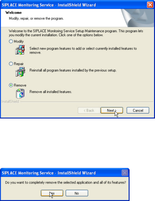 ► Select the program from the list (SIPLACE OIS / SIPLACE Monitoring Service) and click on