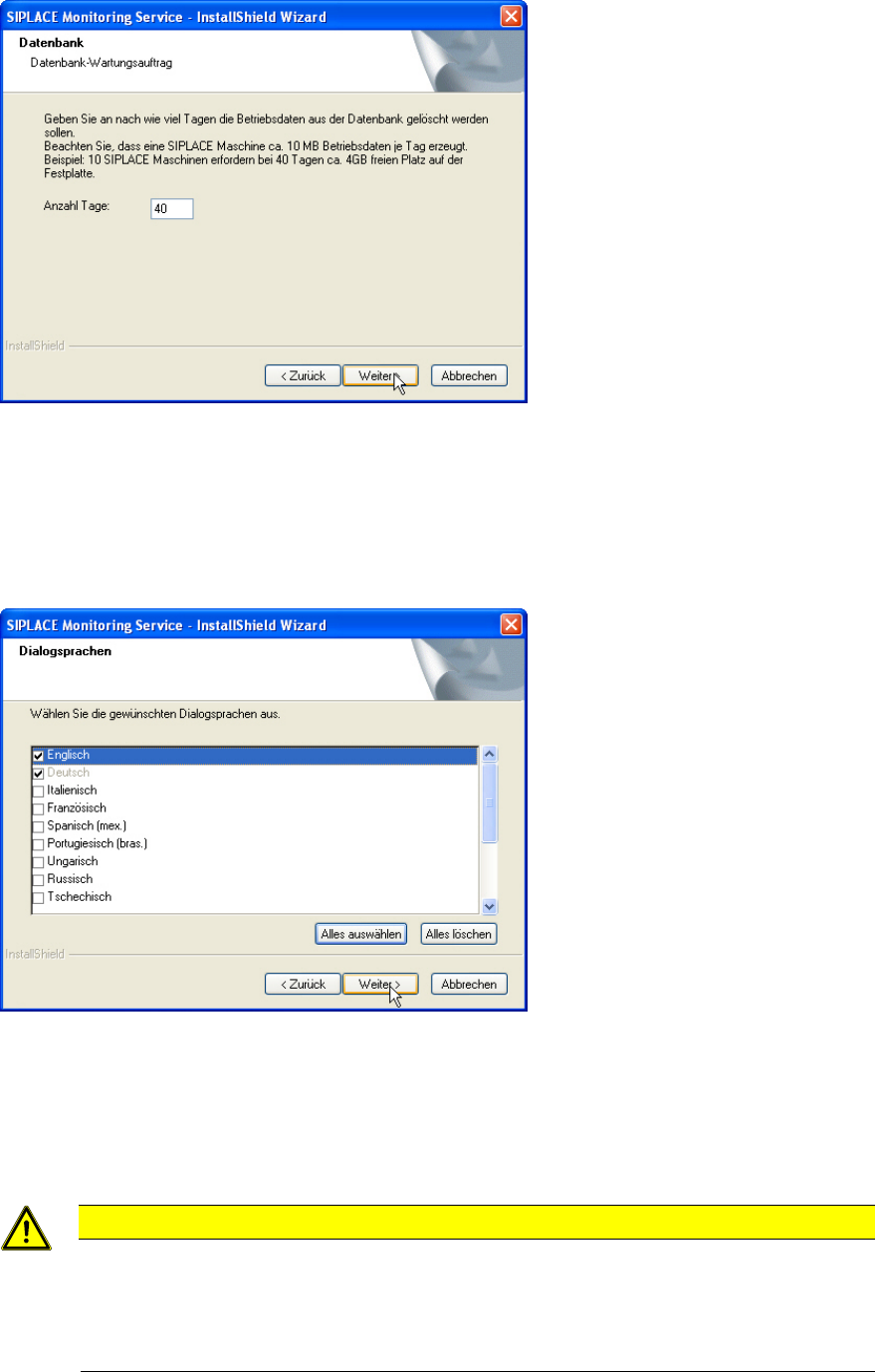 Die Sprachen Englisch und Deutsch werden immer installiert.