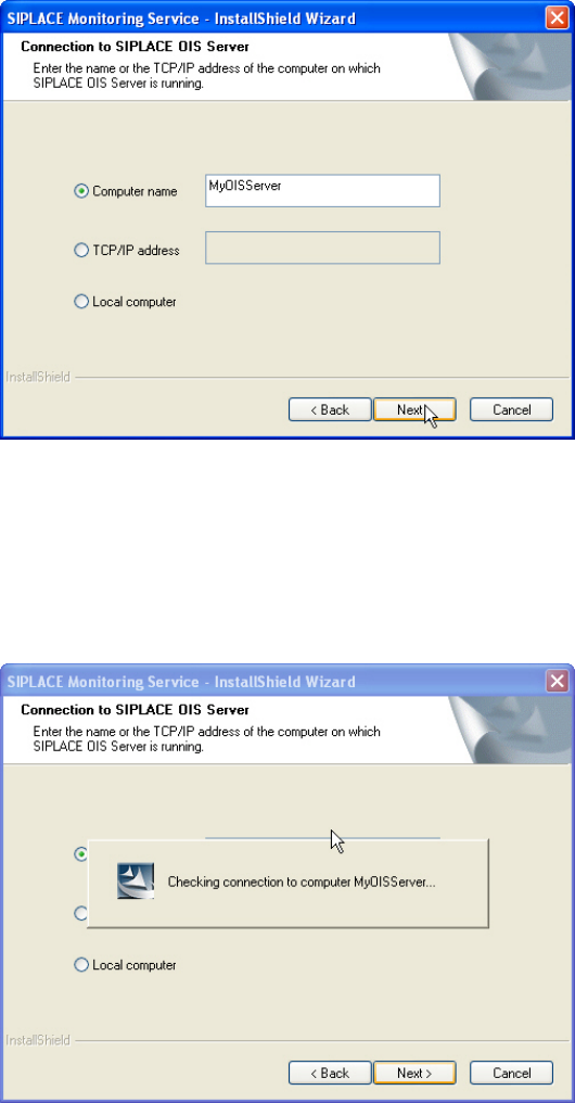 ► Enter the computer name or the TCP/IP address of the OIS Server.
