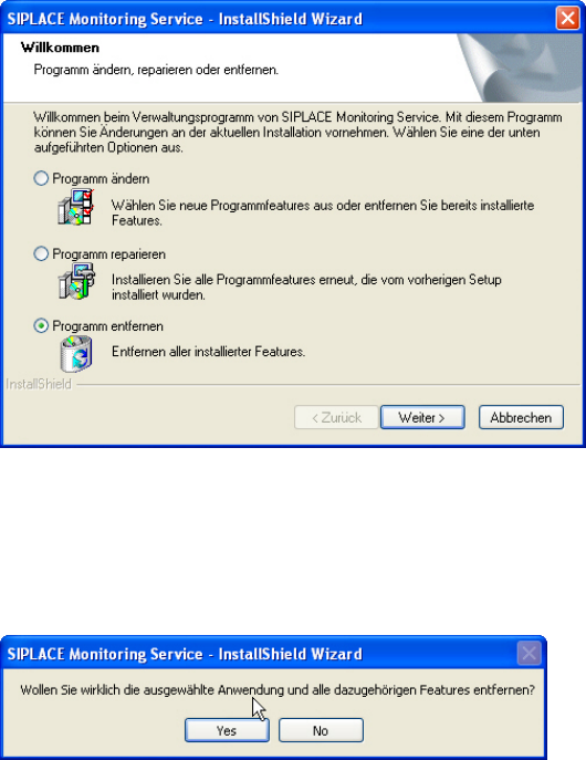 Die Funktion Programm entfernen entfernt alle installierten Komponenten inklusive aller