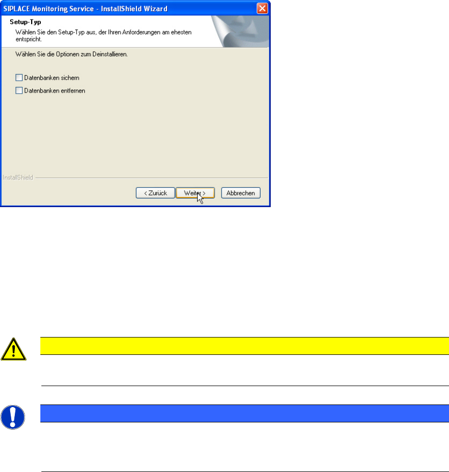 ► Wählen Sie Datenbanken sichern aus, wenn Sie die OIS/SIS-Datenbanken behalten wollen.