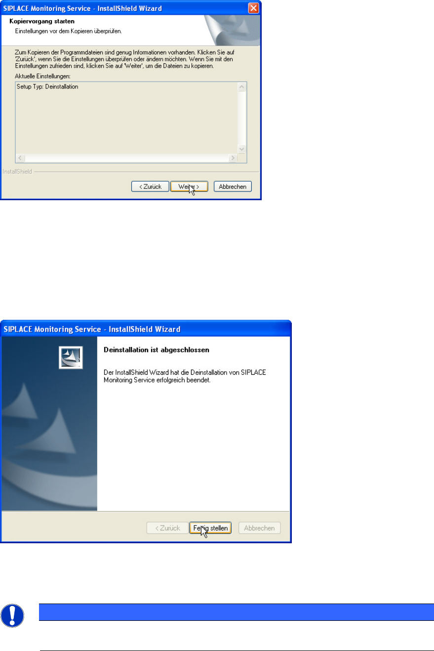 ► Klicken Sie auf Weiter >, um mit der Deinstallation zu beginnen.