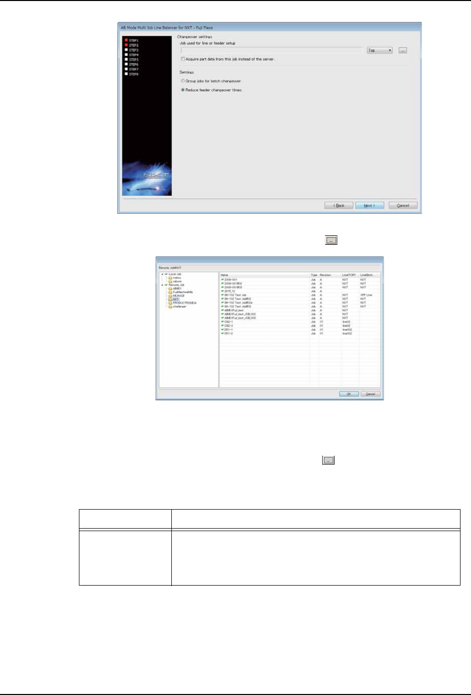 10.在 [Job used for line or feeder setup] 组框中单击 按钮。 显示 Job 一览对话框。