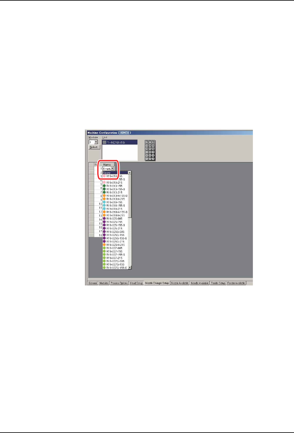 1. 请单击 [Machine Configuration] 窗口下方的 [Nozzle Changer Setup] 标签页。