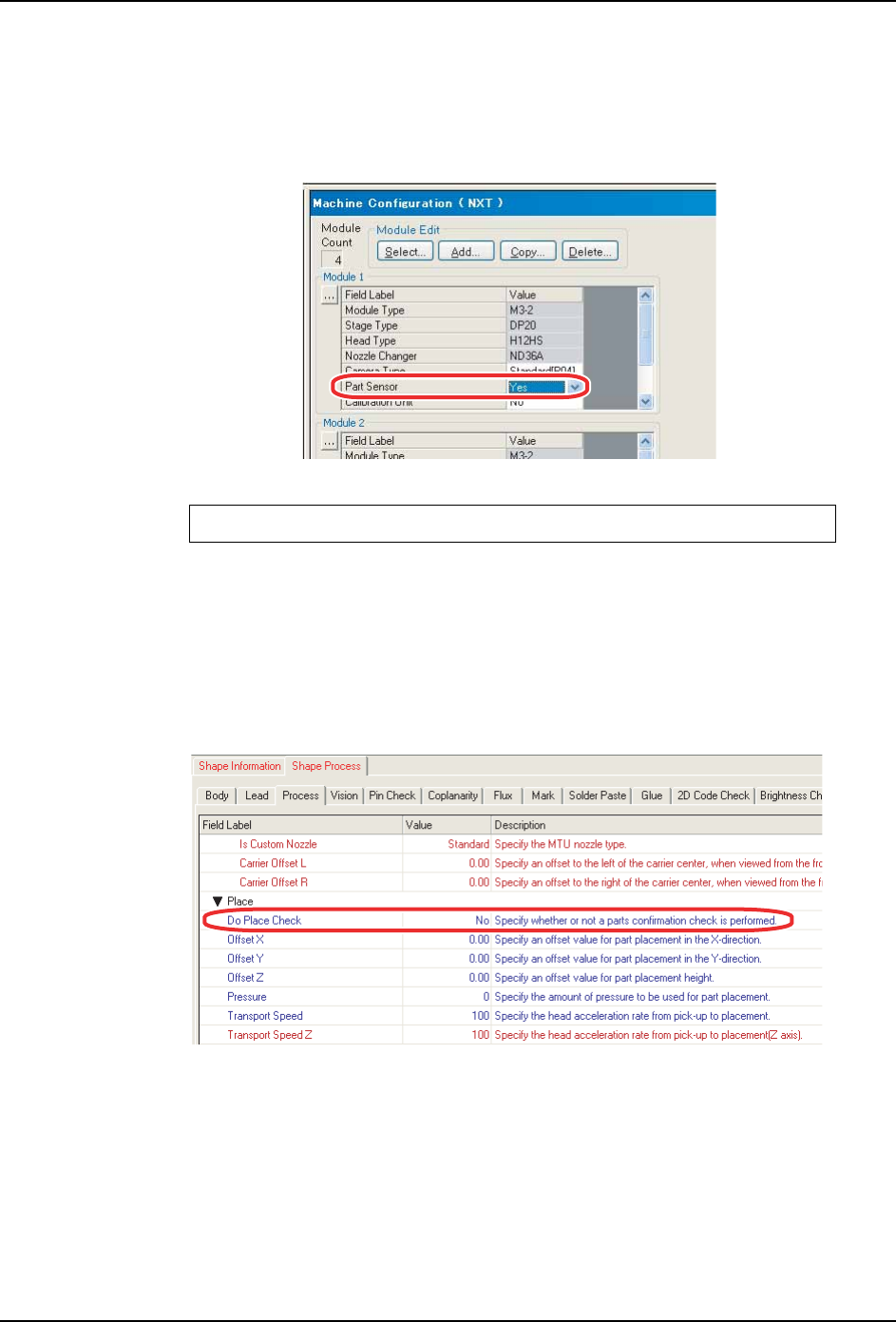 PRG-NXTS-009S1 2. Job 编制器 NXT 系列 编程手册 49 2.5.7 使用带元件侧面识别功能的工作头时 为了使用带元件侧面识别功能的 工作头,在 Job 中需要进行以下的设定。 ·模组的设定 (Machine Configur ation) ·元件有无确认功能的设定 (Sha pe Data ) ·元件高度确认功能的设定 (Sha pe Data ) ·元件正反判断功能的设定 (Part Data) 根据工作头类…