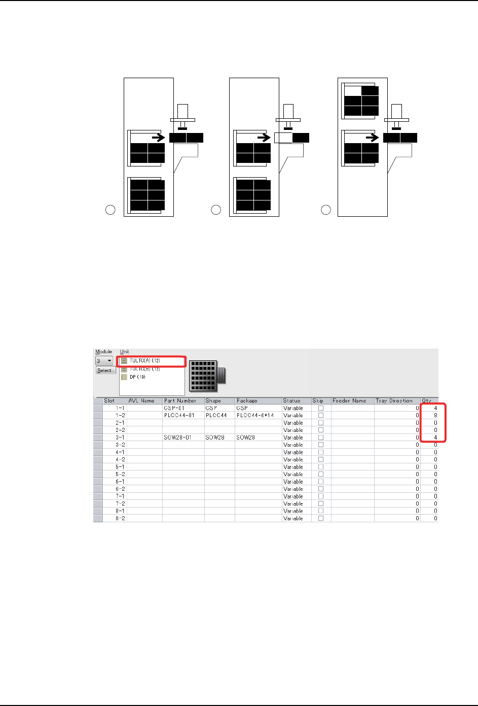 1. 进行优化后,请确认 [Feeder Setup] 是否在料盘箱 A 配置了需要的元件。还有料盘箱 B