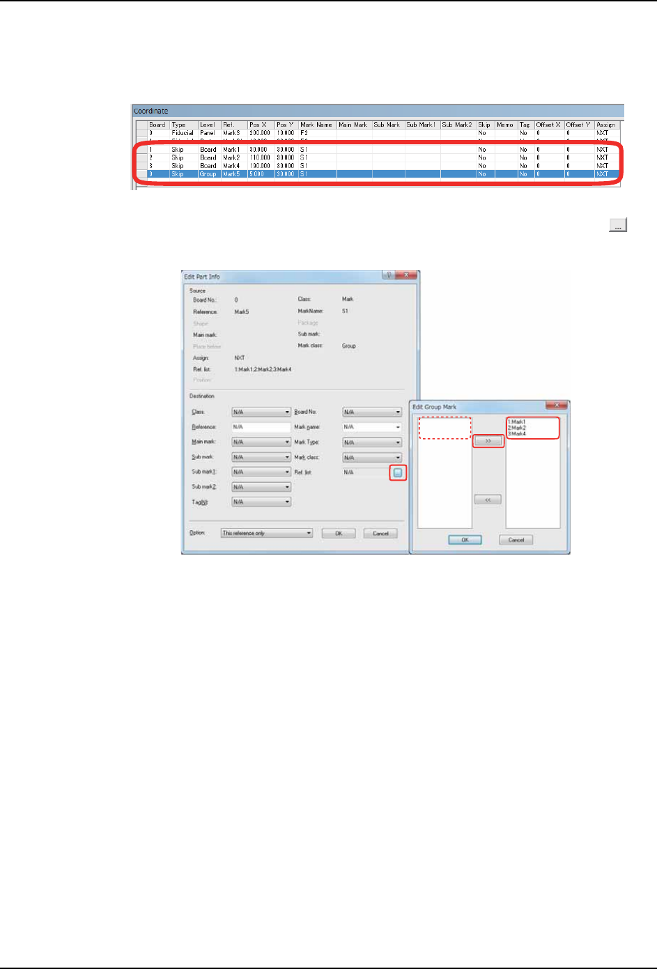 2. 选择 Group board skip mark 的坐标并在元件信息编辑点击 [Ref List(L):] 的 [ ] 键