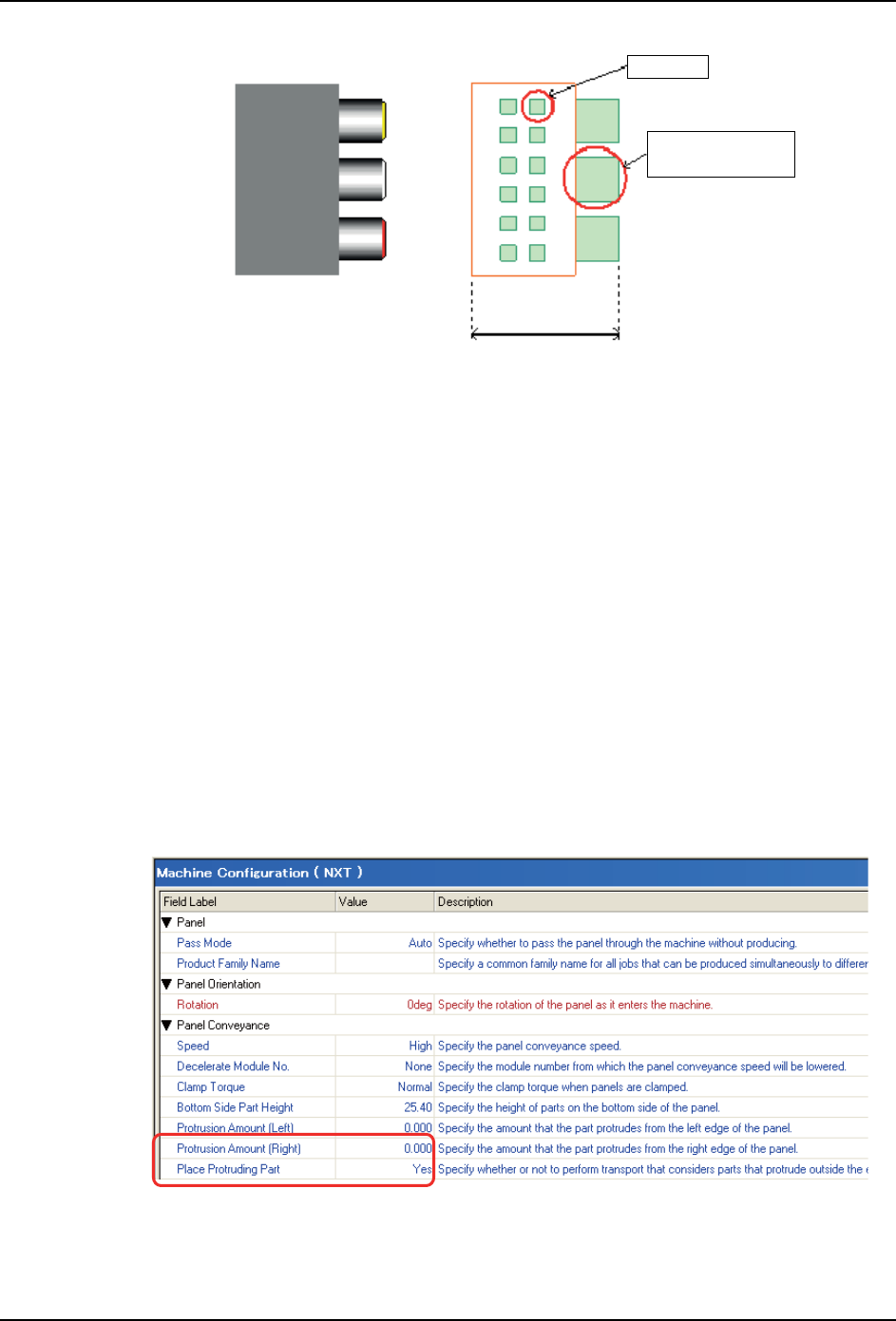 3. 从搬运轨道上的电路板右端超出的元件如果在机器外已贴装,请在 [Protrusion Amount