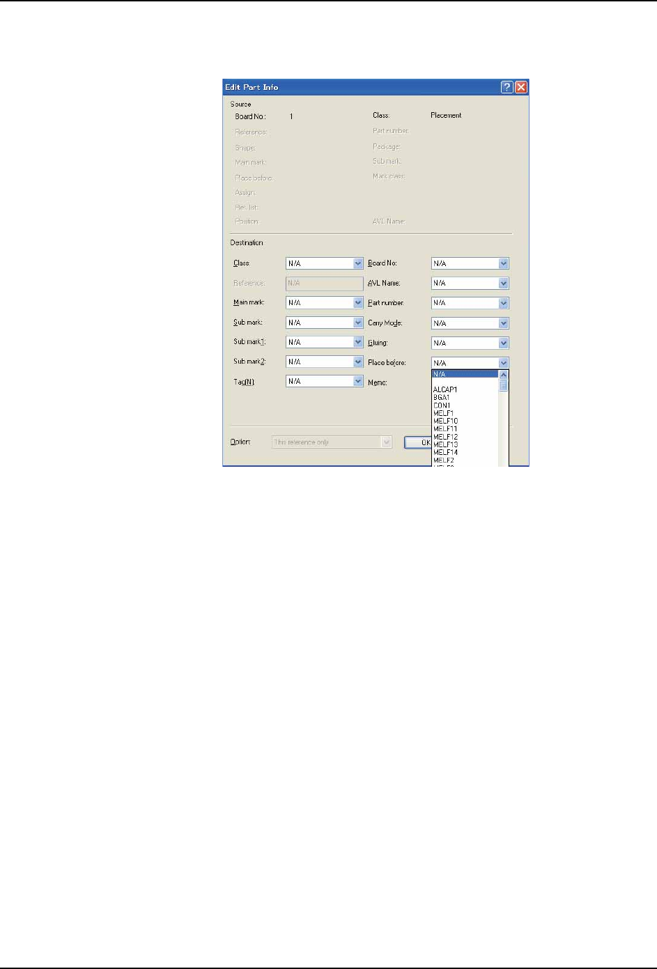 c. 请在 [Edit Part Info] 对话框内的 [Place Before] 的列表中选择后贴装元件的