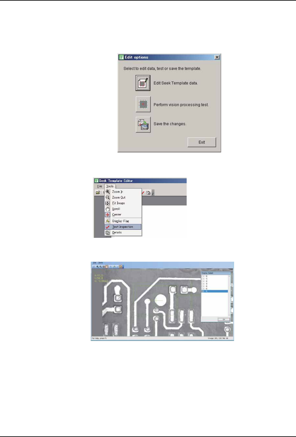 PRG-NXTS-009S1 5. 其他的应用 NXT 系列 编程手册 309 3. 请 移动读取区域的中心 (Center Marke r) , 反复进行影像处理 试验。 a. 选 择菜单栏的 [ 工具 ] - [ 中心的设定 ] 后,将 Cen ter Marker 拖放 到任意位置。 b. 请选择菜单栏的 「工具」- 「实行试验处理」 。 4. 影像处理失败时,显示错误对话框。 5. 影像处理失败时,请进行定位点数 据的调整。详细…
