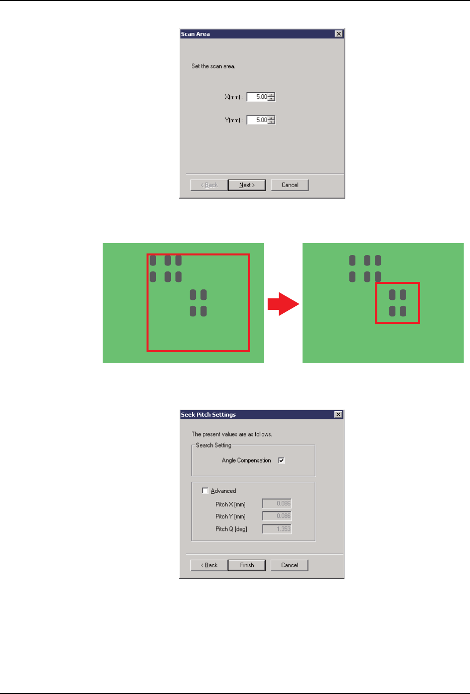 备注 ) 通过设定小的读取区域、可以避免相似的焊盘图形,防止误识别。