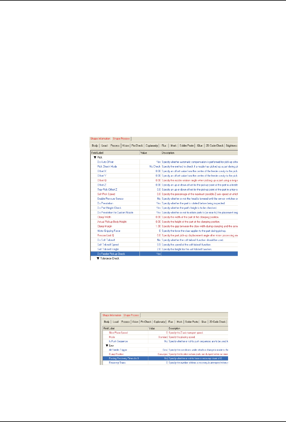 2. 进行吸取失误时停止吸取的设定。请选择 [Shape Process] - [Process] - [Error],将