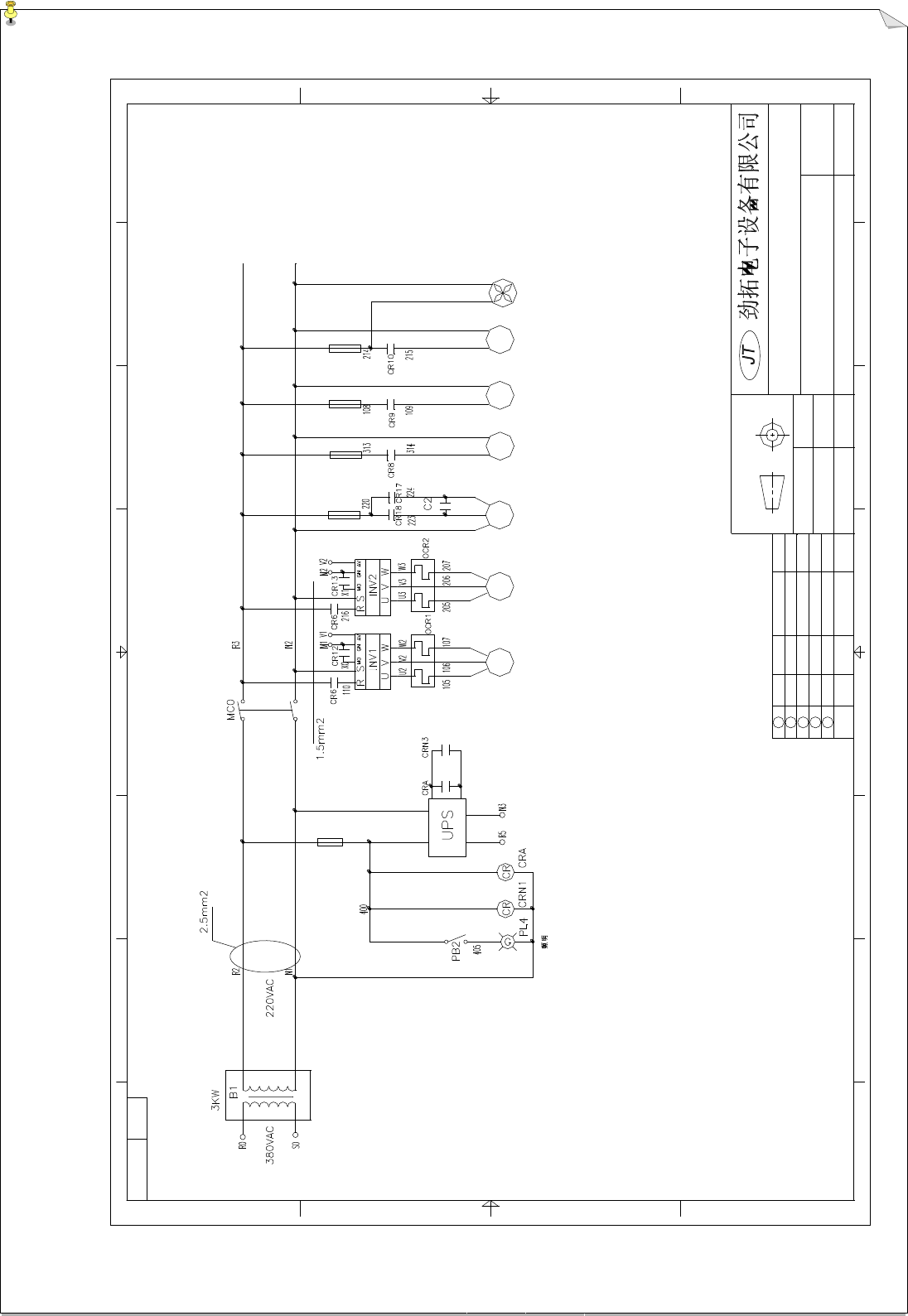 劲拓电子设备有 限公司 第 4 页 共 59 页 WS -350PC-B 型全电脑 控制双波峰焊锡 机用户手册 M4 传输马达 马达风扇 更改单号 7 8 A R5 400 9 5 9 1 B 6 5 4 Ⅳ 标记 Ⅱ Ⅰ Ⅲ 处数 Ⅴ PC 机 408 407 406 14 13 N3 12 8 N1 4 12 A B WS-350PC -B 电气控制图 UPS 3 未注公差按 IT12 执行 设计 DESIGN 审核 CHKD. 批…