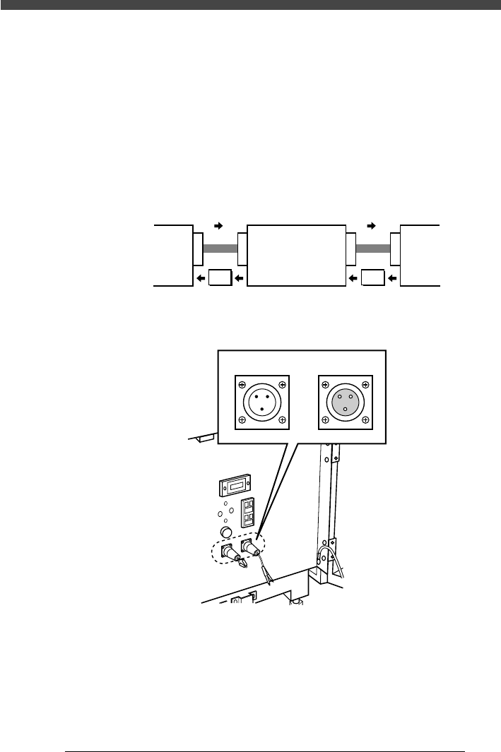 GATE IN コネクターは後行程機と接続し、GATE OUT コネクターは前行程