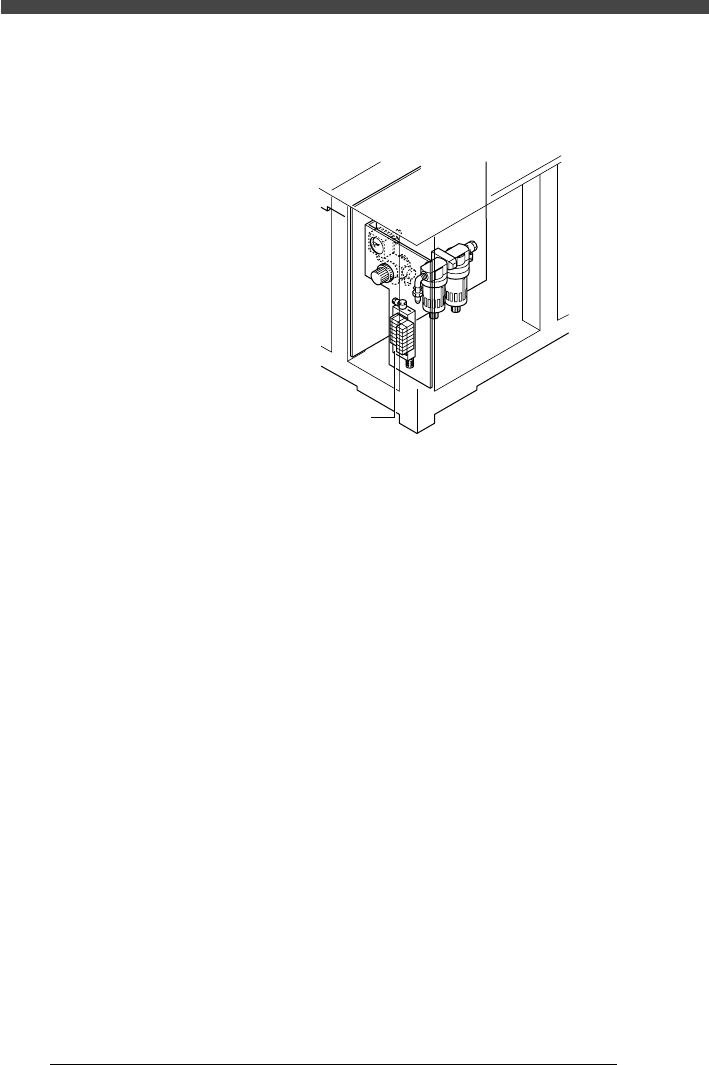 コンベアユニット各機構のエア駆動バルブは、本体背面の右下パネルを開ける