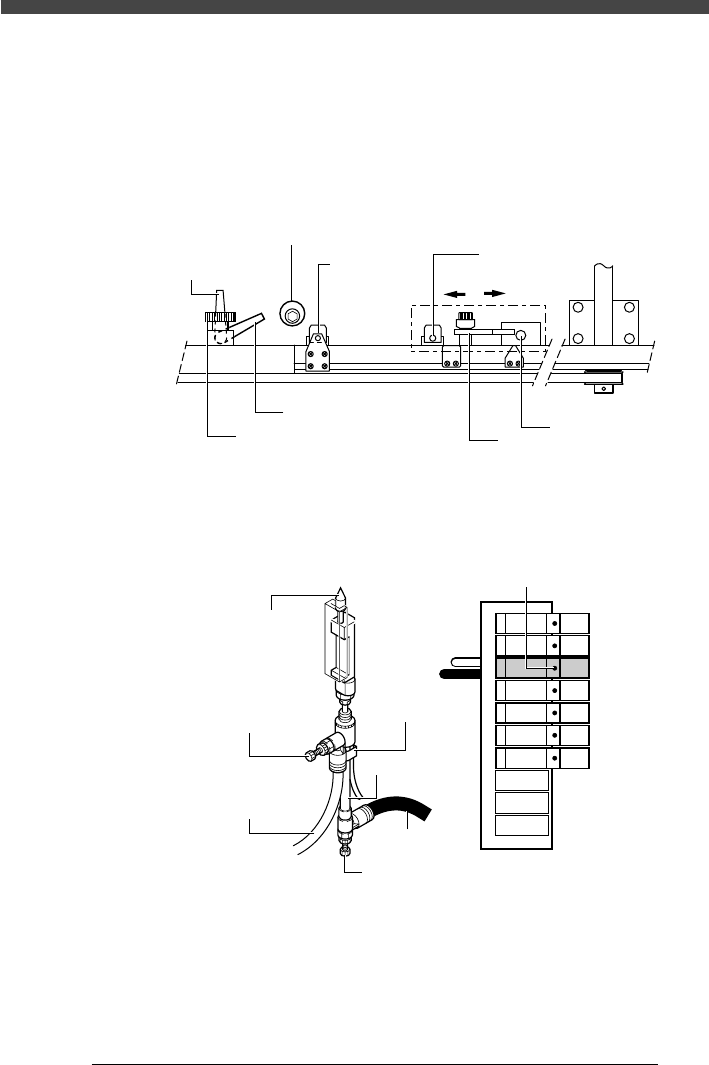 3- 43 SER09989020 調整 第 3 章 2 2.1.1 ロケートピン 固定ロケートピンと可動ロケートピンがコンベアレールに沿って並んでおり、基 板の位置決め穴にはまり込んで基板を固定します。これらのロケートピンの上 昇・下降動作スピードを調整します。 ■ ロケートピンの配置(上から 見た図) 2A143202-00 クランプレバー ロケートピン移動ダイヤル メインストッパー 固定ロケートピン クラン…