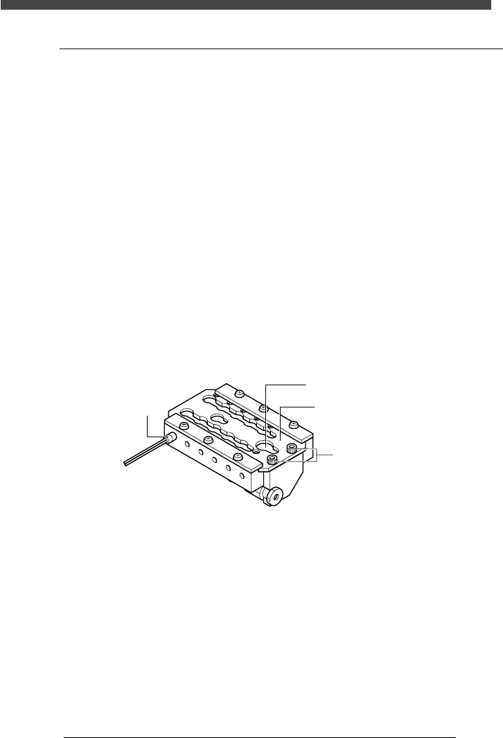 3- 152 SER09989020 調整 第 3 章 8 4 調整後、緩めたボルトを締めてクランププレートを固定します。 5 クランププレート位置センサーからの入力を確認します。 手動モードの出力モニターでクランププレートを ON/OFF させながら、 セン サーの検出状態を入力モニターで確認してください。次のように入出力表示が 対応していれば正常です。 4A043801-00 出力表示 入力表示 TP02=0(クランプ時) …