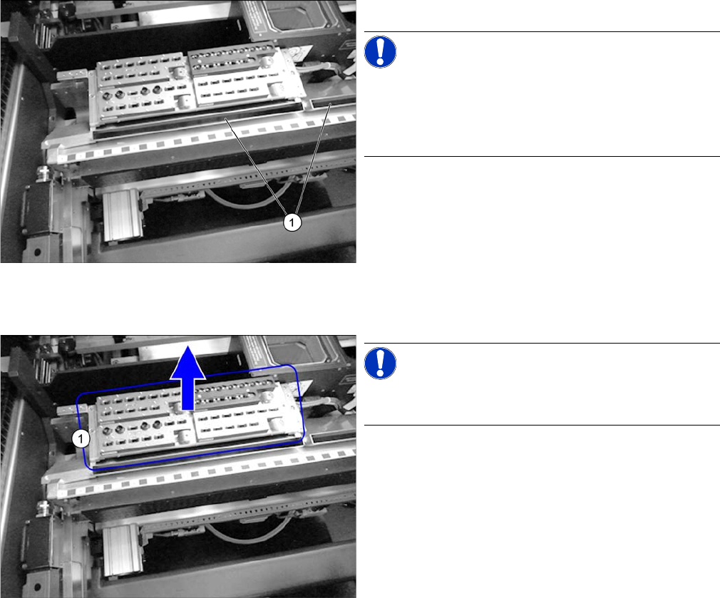 ► 移出抛料导槽 (1)。控制面板上应立即出现一条消息。