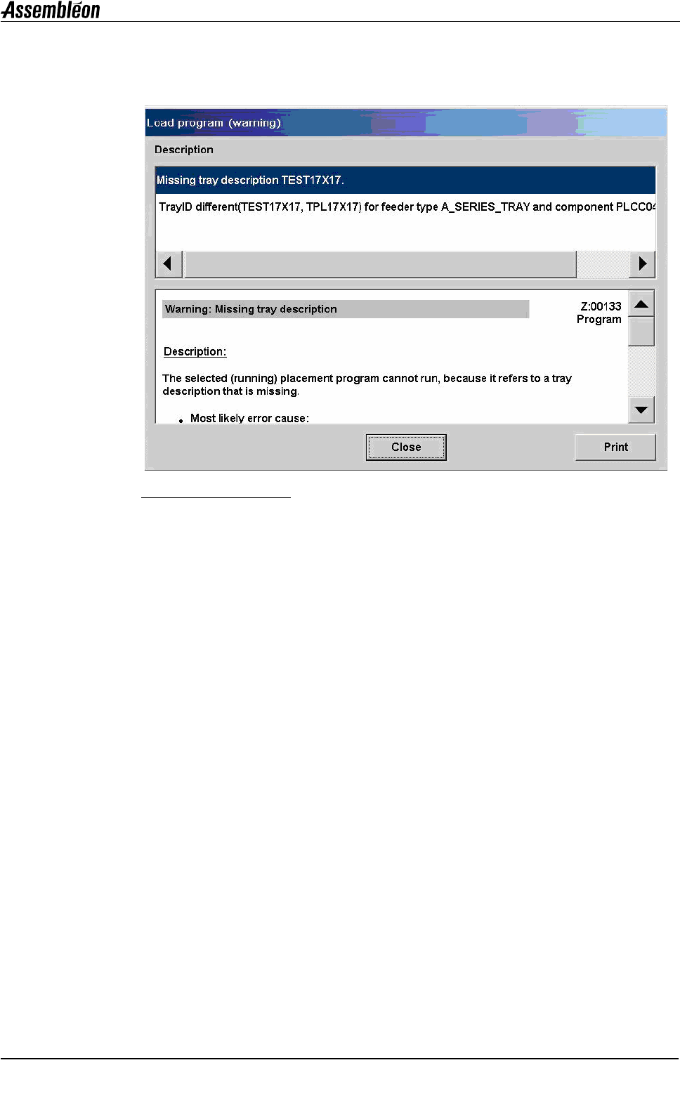 缺少托盘描述时可能显示的错误信息