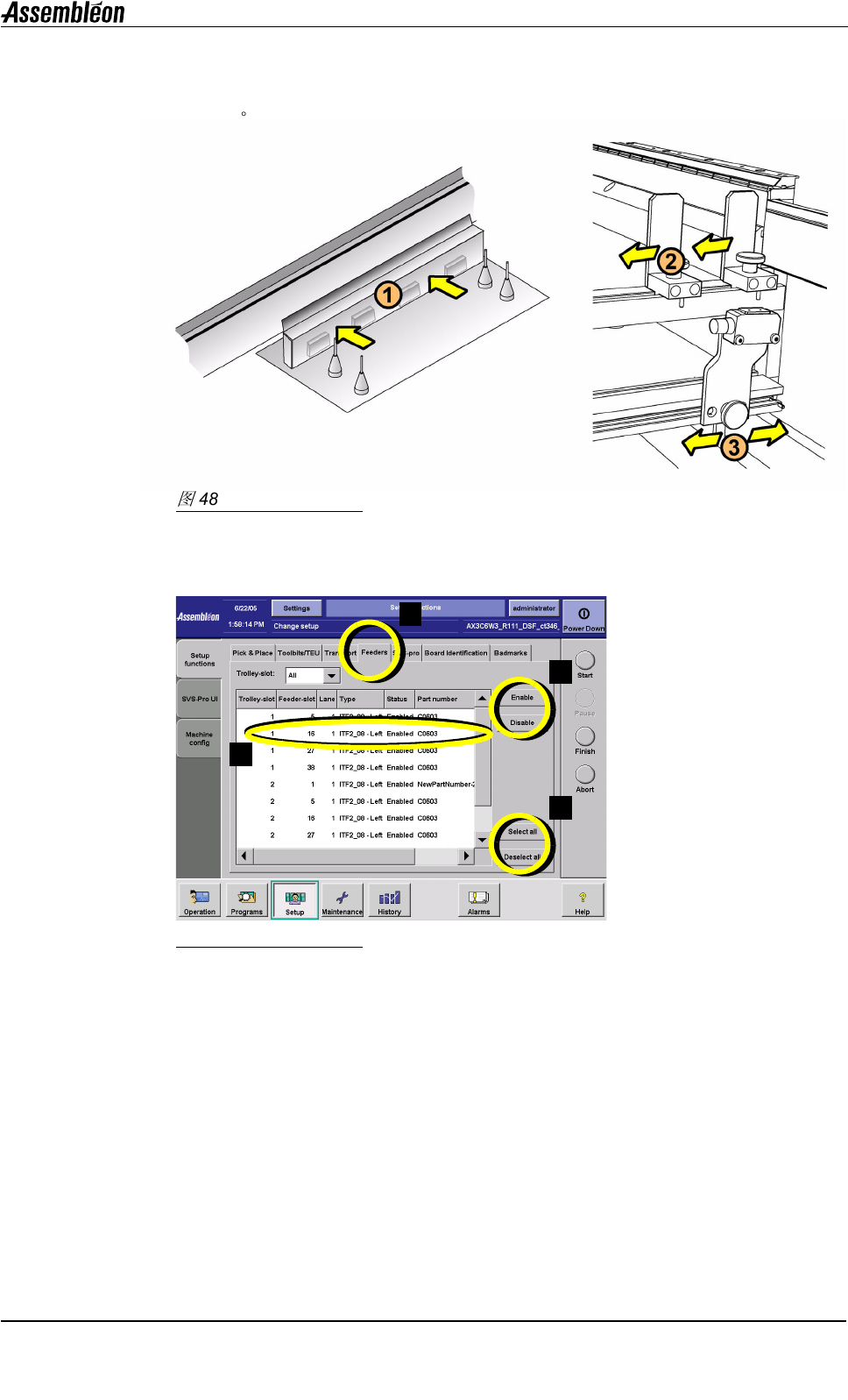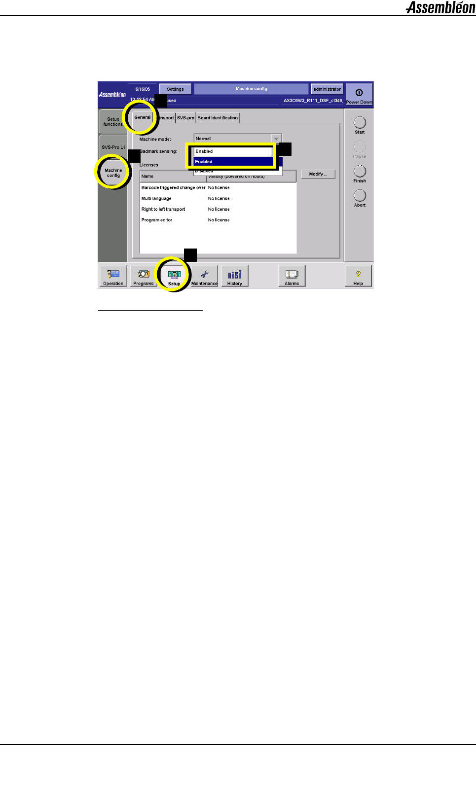 第 A6 章 用户参考手册 4022 593 52681 38 AX-301/501 , AX-3/5 08.01 应用 Machine setup.fm 禁用不良板标记识别时, 进入机器的电路板上不应用任 何不良标记识别。 不良板 标记识别保持禁用直至再次启 用或直至此贴片程序再次从 存档位置载入。 图 50 启用/禁用不良板标记感知 要启用或禁用不良板标记感知 : 1. 选择 “设置 ( Setup ) ”。 2. 选择 “机器配置…