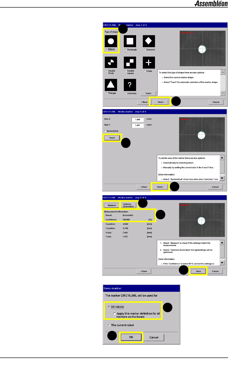 第 A7 章 用户参考手册 4022 593 52681 44 AX-301/501 , AX-3/5 08.01 应用 Test run.fm 3. • 标记的形状类型为椭圆 ( 1 ) 。 4. 5. • 确保结果成功 ( 3 )。 6. 1 2 1 2 2 3 4 2 1 9
