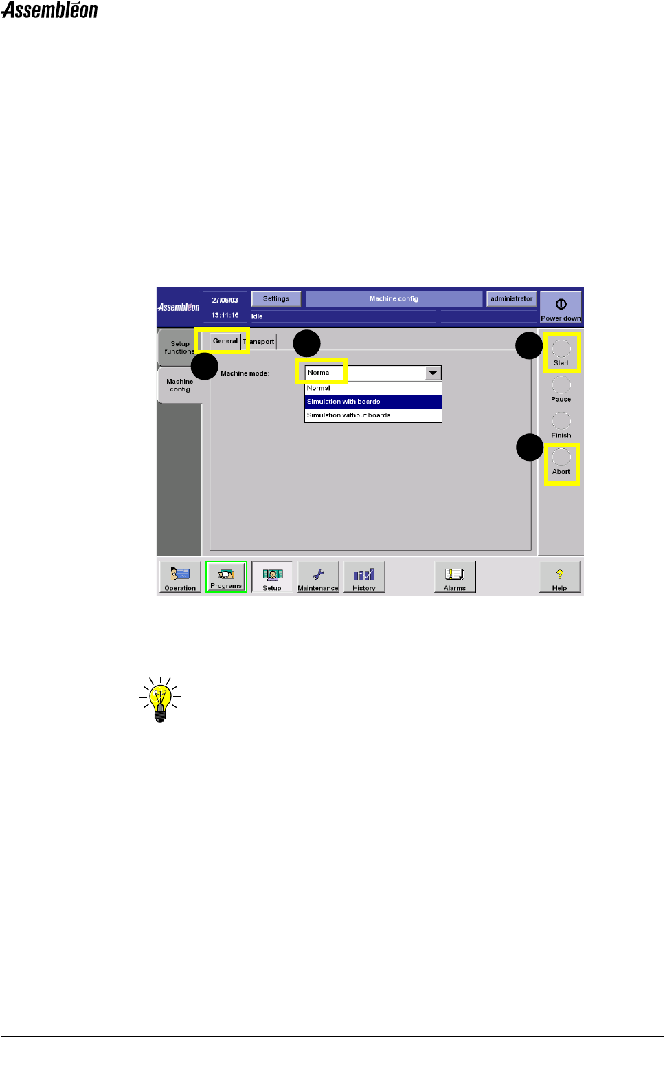 1. 确保贴片程序为 “空闲 (idle)”,如有必要选择 “终止 (abort)” 或 “ 完