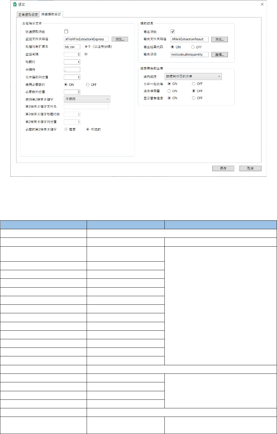 ISM Connect ion 使用说明书 3 设置 3- 17 图 3-3- 12 紧急出库设定画面 下表 为紧急 出库设定画面的 初始设置值 。 表 3-3-5-2 紧急 出库 设定画面 的设定 一览 项目名称 初始设置值 内容 出库 指示文件 快速出库功能 OFF 设定 快速出库功能 的有效/无效 监控文件夹 路径 .¥ File ¥ Fil eExtracto r ¥ Exp ress 与 [3 -3-5-1 正常出库设定 画面…