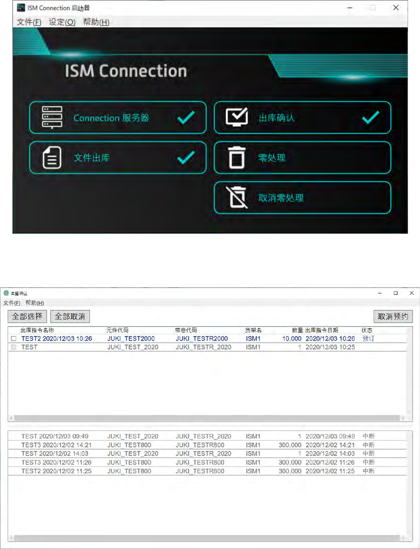 ISM Connect ion 使用说明书 7 出庫确认 7-1 第 7 章 出库确认 7-1 出库确认的启动 请在启动器画面 点击「出库确认 」 按钮 。 图 7-1-1 启动器画面( 未 启动出库确认 ) 启动 出库确认后, 将显示 输入管理员密码的 画面。 请输入密码 后 点击 「 OK 」按钮。 管理员密码 的初始值为 ”administrator” 。 希望变更 管理员 密码 时 ,请 在 ISMSupp ortSoftwar…