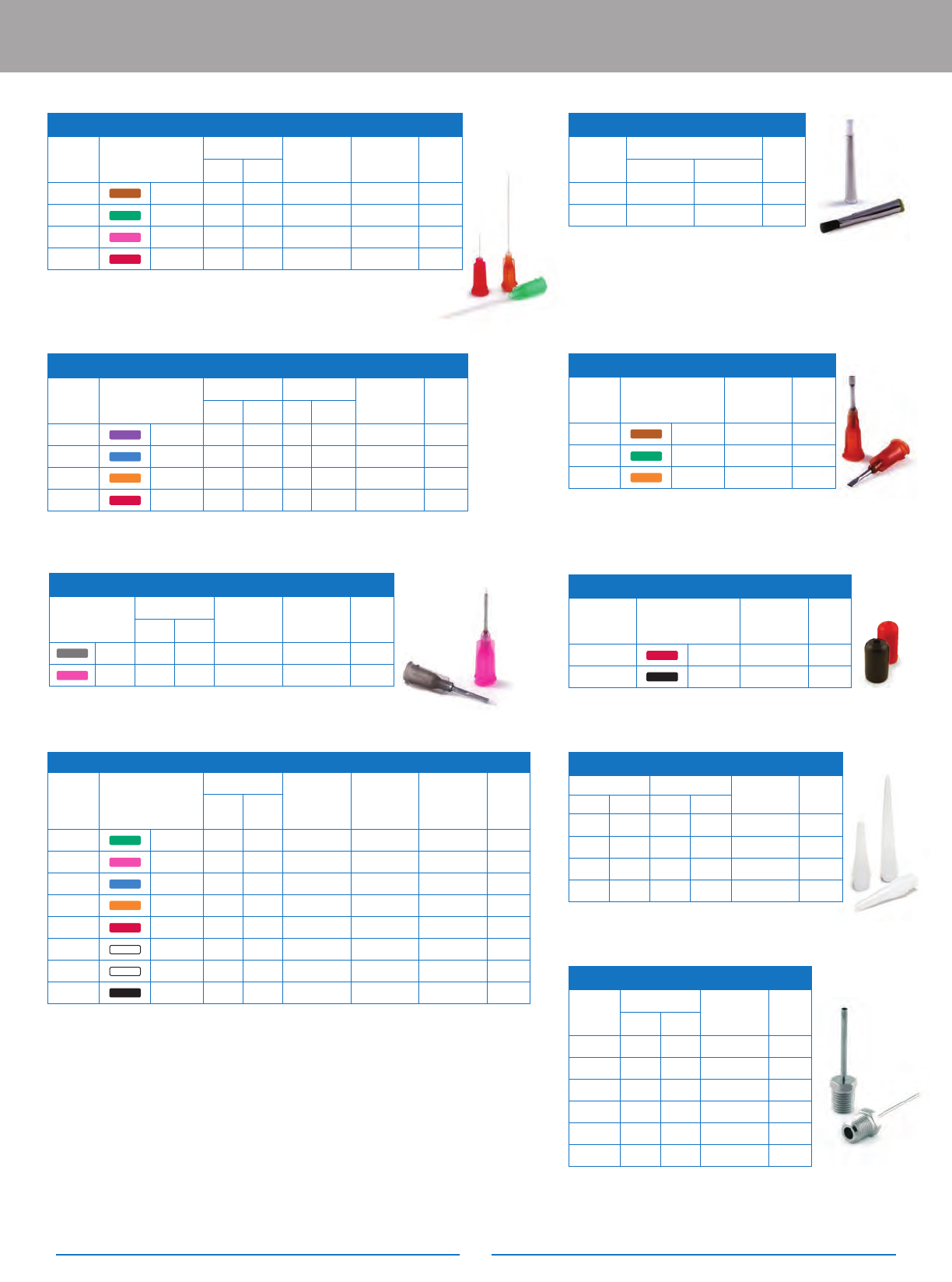 13 精密点胶针头 标记注释 ● 推荐使用 ▲ 可以使用 X 请勿使用 * 可以使用针头防护罩 , 产品编码 #7017715 或 7017717 + 为取得最佳效果建议使用斜角针头 ** 为实现最佳效果 , 请使用标准的锥形针头。 点胶针头 应用 锥形针头 不锈钢精密 针头 PTFE 衬里 针头 挠性针头 极低粘度流体 X ● ● ● 颗粒状焊锡膏 ● ● ▲ X 精密微小点 X ● ▲ ● 腐蚀金属的流体 ● X ● ● 凹陷处注胶…