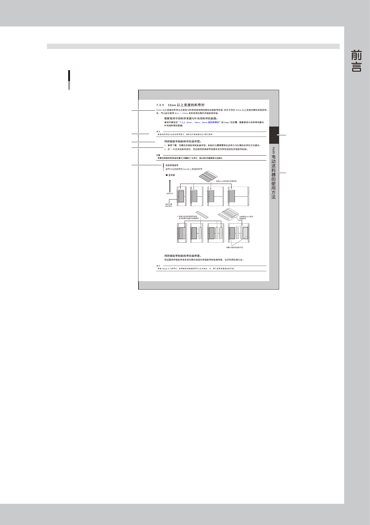 拼接料带在贴片机运行过程中进行,请注意不要使人体 ( 身体的一部分,含衣物 ) 或物件进入料带拼接作业范围内,尤其