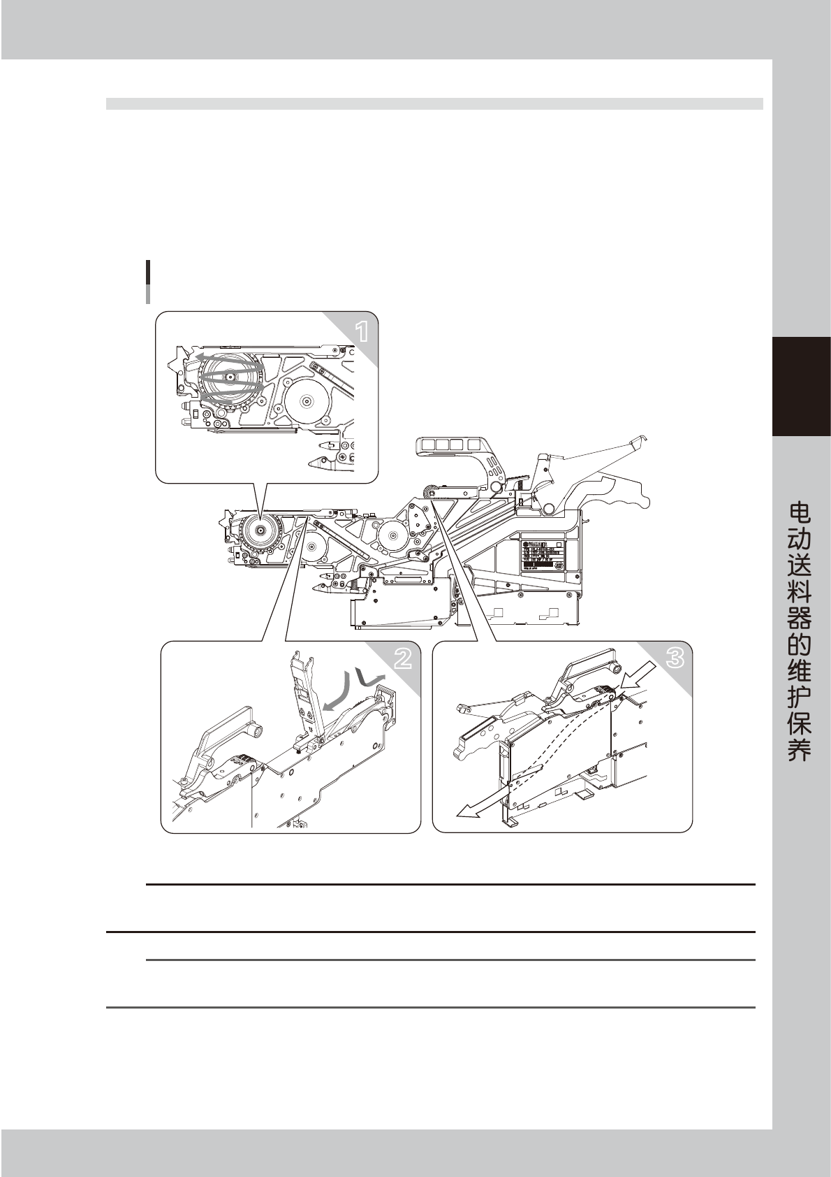 3.卷绕盖带的齿轮部,盖带回收盒内 ( 下图中 3)