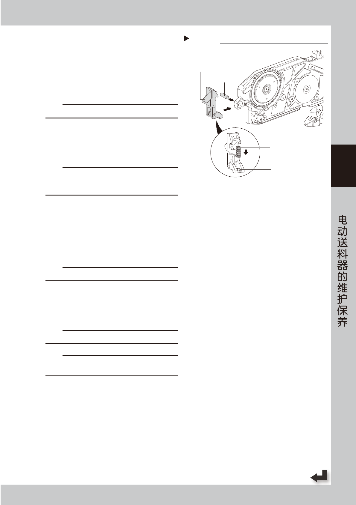 1. 将弹簧套在新前端压料扣的凸部。