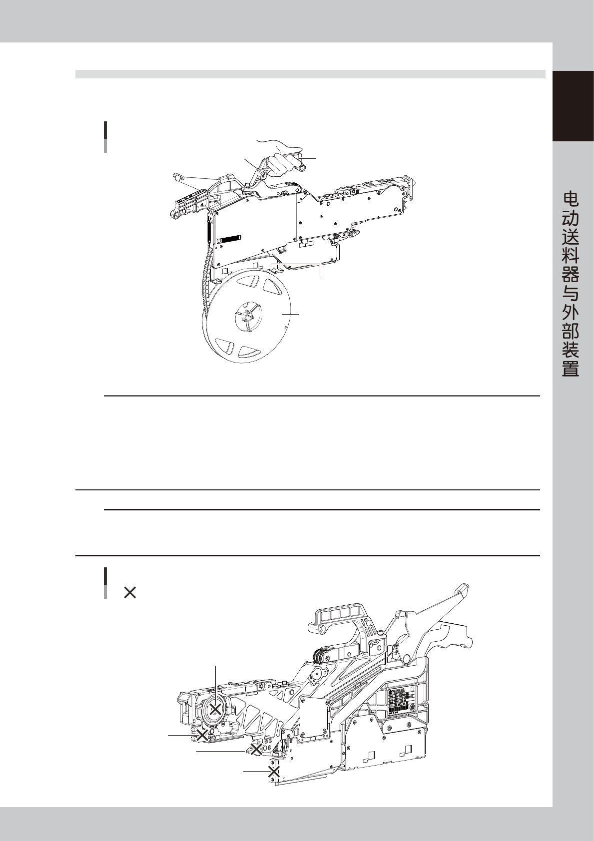 ‧若用手托着板卡连接器部或链齿轮部,可能会导致 ZS 电动送料器发生故障。