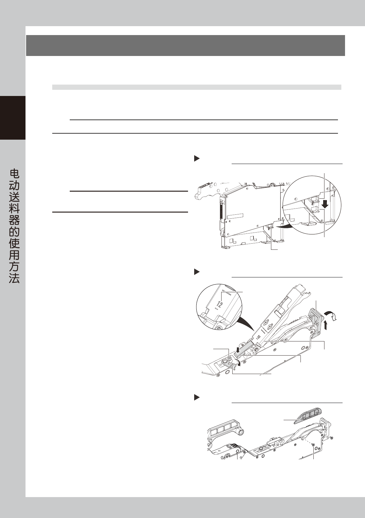 2-2 2 Z S 2. 使用送料器之前的准备 本节主要介绍使用 ZS 电动送料器之前的准备作业。请根据实际需要进行必要的准备。 2.1 12mm 与 16mm 的切换方法 12mm 与 16mm 的 ZS 电动送料器使用同一送料器机体。只需更换压料盖即可切换使用 12mm 或 16mm 料带。 下面,介绍切换方法。 n 要点 出货时,12mm/16mmZS 电动送料器为 12mm 料带用规格,附带 16mm 用压料盖。 ■从 …