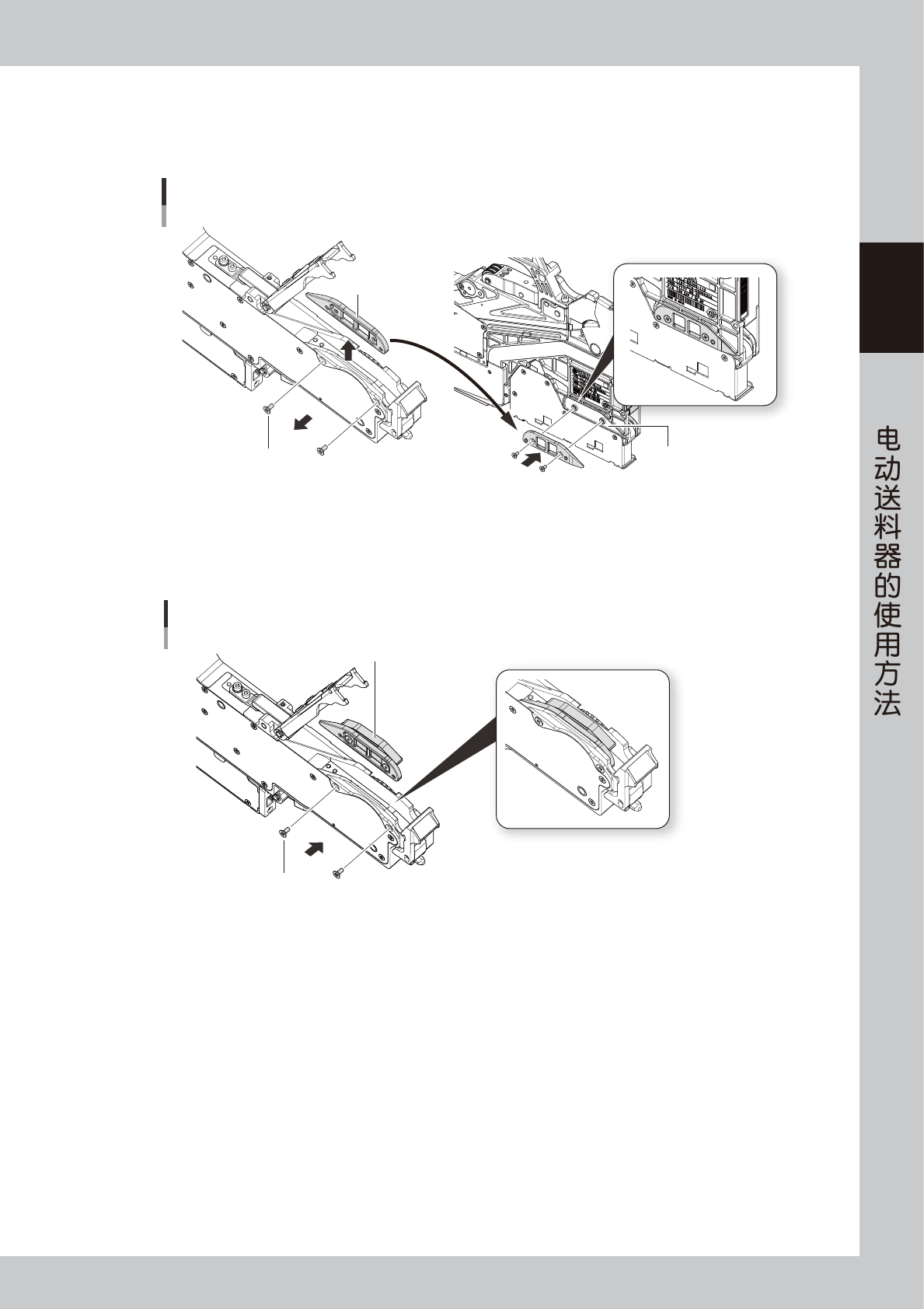 载带的料腔高度超过了 1.7mm 或不使用磁块弹簧片时,请按照下列步骤将磁块弹簧片拆下并装入存放槽内保管。
