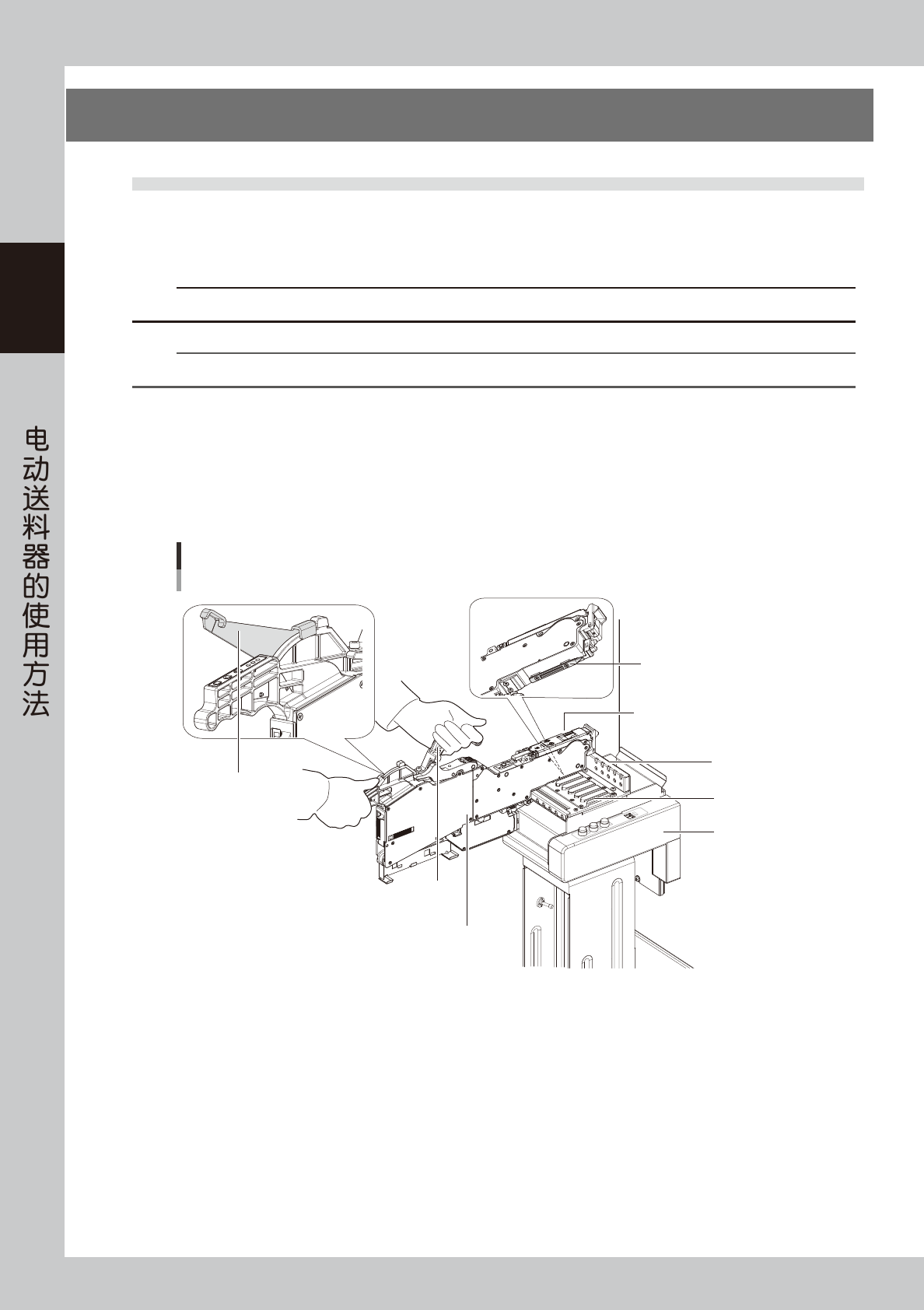 2. 在握住送料器手柄杆的状态下,将送料器沿导槽滑动直到插入到位。