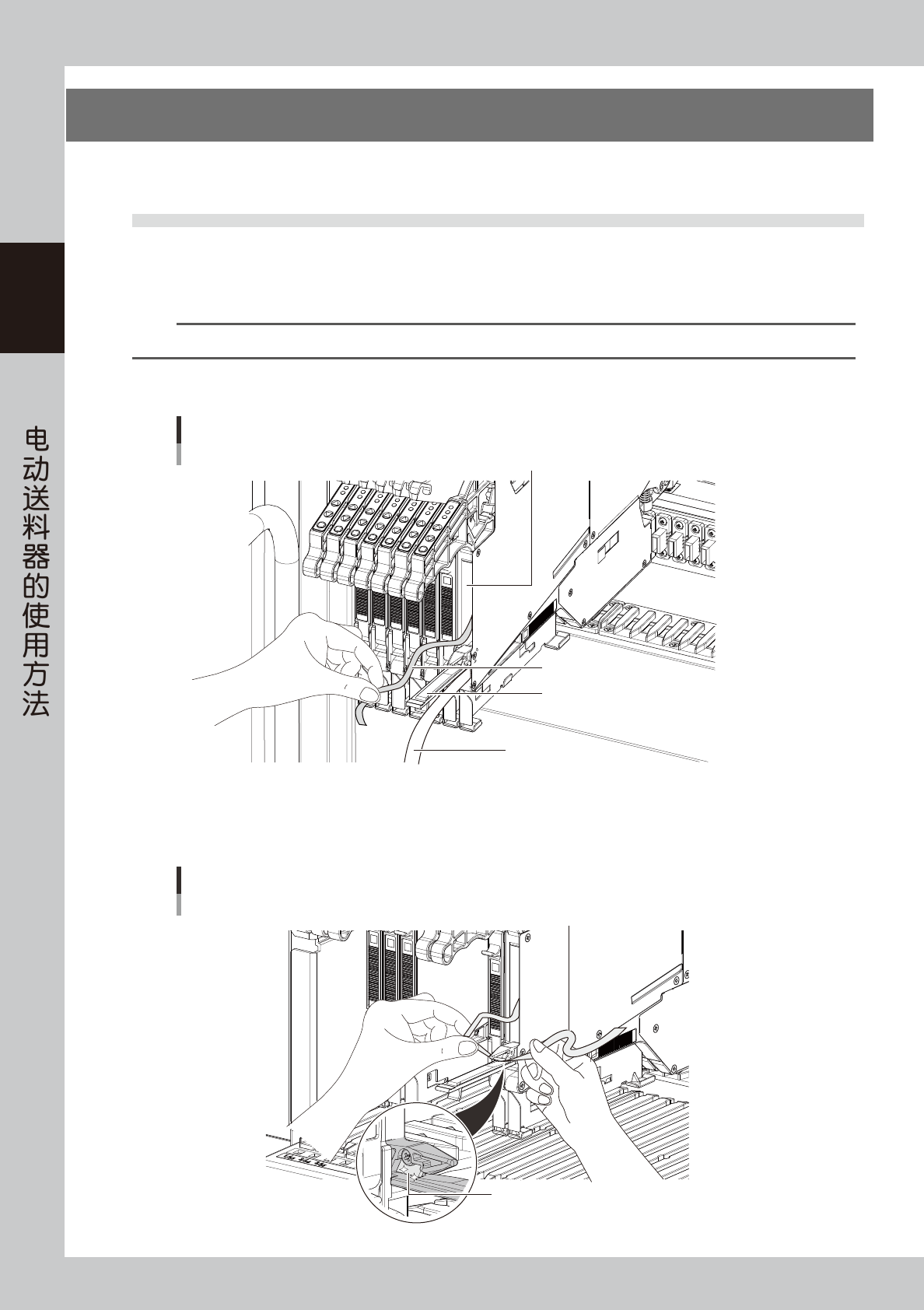 2-35 2 Z S c 注意 尾盖损坏时,切带刀片可能会外露,注意不要被划上。 n 要点 32mm 以上的 ZS 电动送料器不带切带刀片。清除盖带时,请用剪刀剪断盖带。 3 关闭尾盖。 尾盖内侧装有磁块,易于开关。 关闭尾盖 尾盖 磁块 65232-KLJ-00 c 注意 除了清除盖带以外,请关闭尾盖。否则,可能会导致尾盖被损坏。 n 要点 尤其是使用拼接料带功能连续供给元件等时,如下图所示,盖带回收盒因装不下用完的盖带,尾盖…