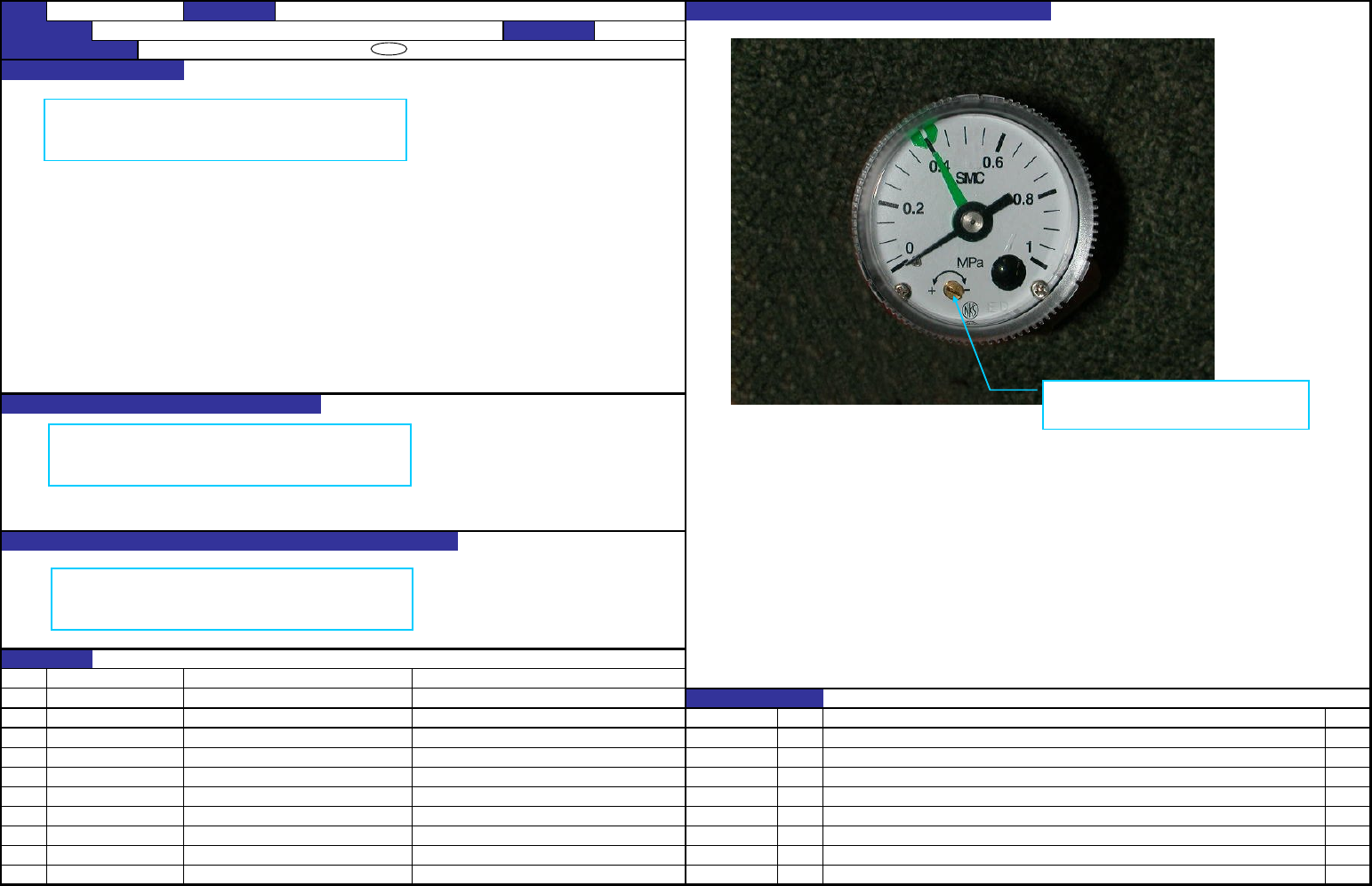 机 种 NO ① ② NO. 担当人 ③ ④ ⑤ ⑥ ⑦ ⑧ ⑨ ⑩ 【 11 】 -2 QA表 NO. 1 (1/2) NO. 1 (2/2) 装置名称 空气 关系 确 认 方法 及调整方法 (故障 处理 方法) 功能名称 压力调整 编制日期 2002/9/4 质量保证类别 功能・安全性 / 可靠性 / 安全性 / 商品特点 质量 特性( 规格调整 值 ) 功能作用( 规格调整值 的意 义 ) 预想故障 ( 应规格调整值 不良而 发生…