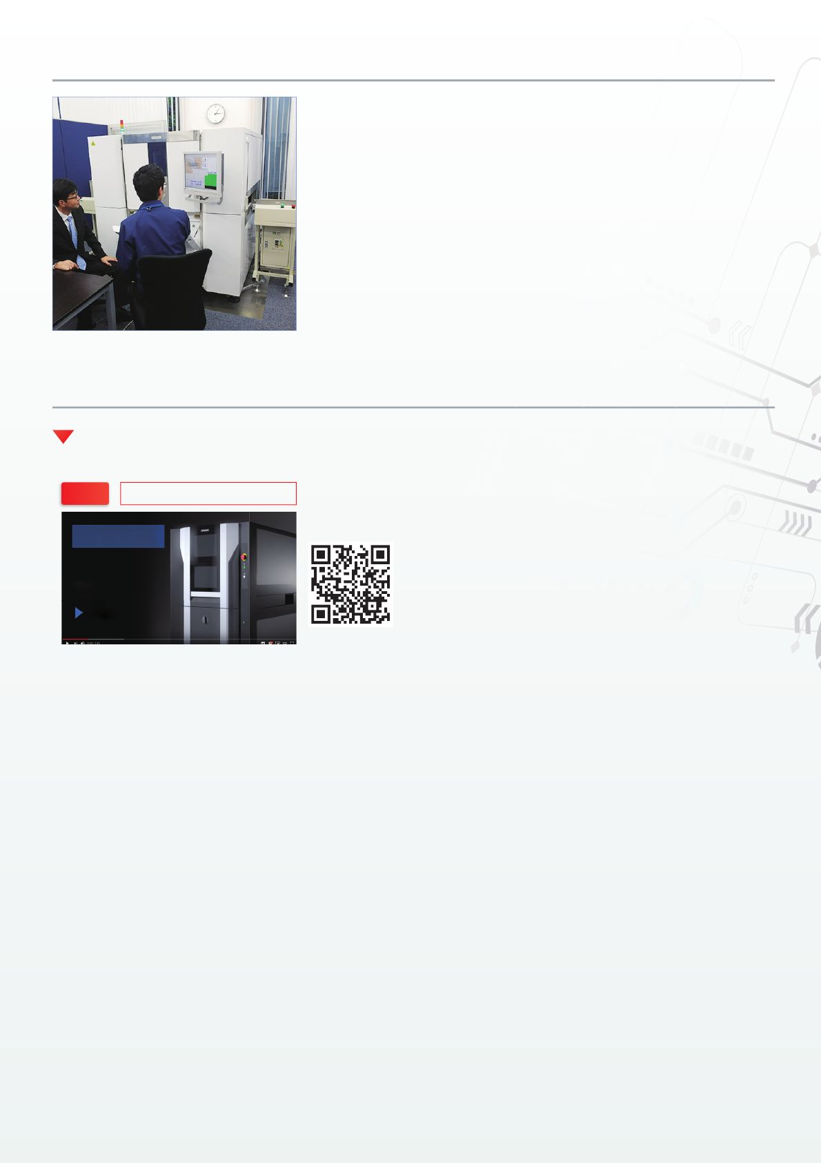 SMT 和检测设备系统解决方案 VT -S530 VT -S730 VT -X750 安心无忧 示教室指导 广 泛 的国内 支 持系 统 ( 全年支持 ) 由30多名专注于检测系统的 工程师打造出一套可靠的支持 系统。 厂商可 以直接提供各种支持, 比如提供培训 、 发布系 统、 系统引 进后的维护以及全年全天候的故障 处理。 客户可以使用 欧姆龙的检测 系统验证其 PCB 和工件。 请联系欧姆龙销售代表。 关于我们产品的更多详情 能够…