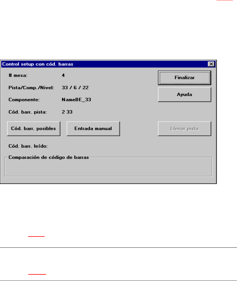 En el campo de indicación de la ventana "Control setup con cód. barras" se muestra el resul-