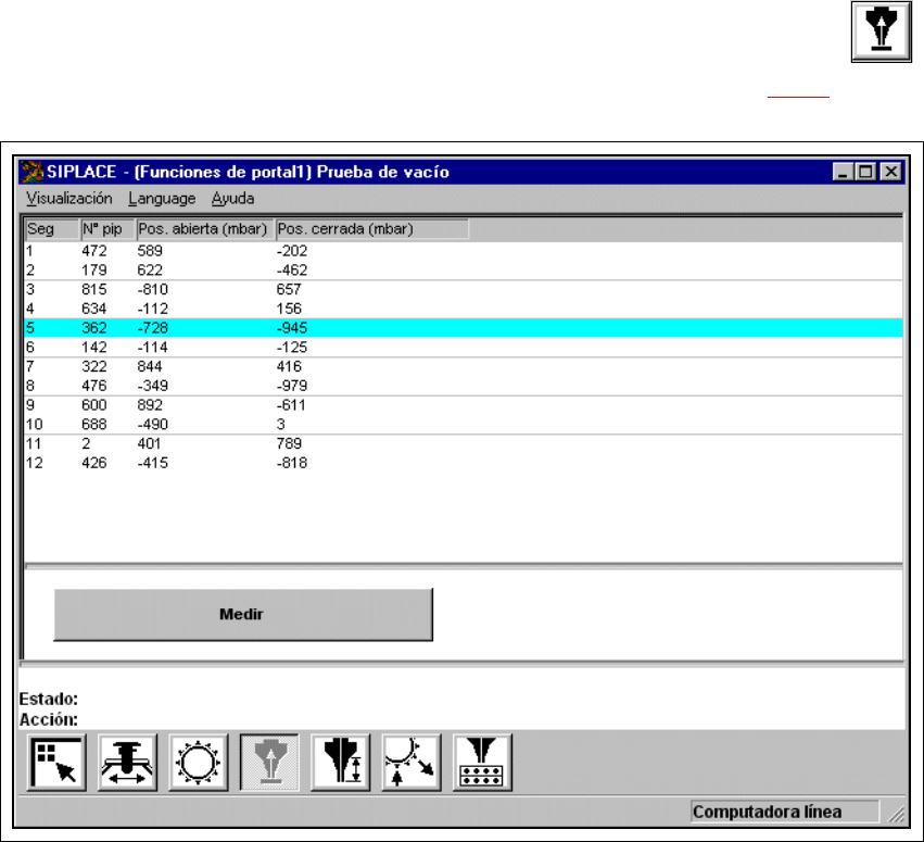 Instrucciones de ser vicio SIPLACE S -23 HM 5 Funciones individuales Versión de s oftware SR.406.xx Edición 02/00 ES 5.2 Funciones individuales portal 159 5.2.3.1 Funciones En la visual izació n "Prue ba de vacío&qu…