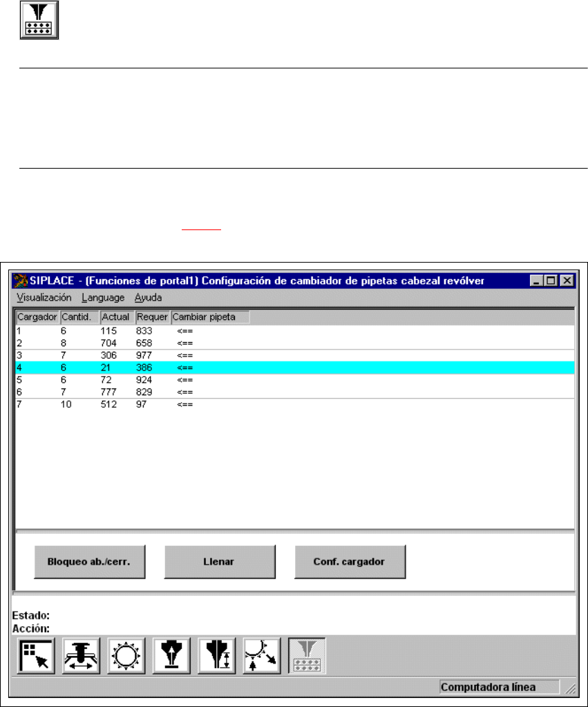 En la visualización "Configuración de cambiador de pipetas cabezal revólver" se ofrecen las fun-
