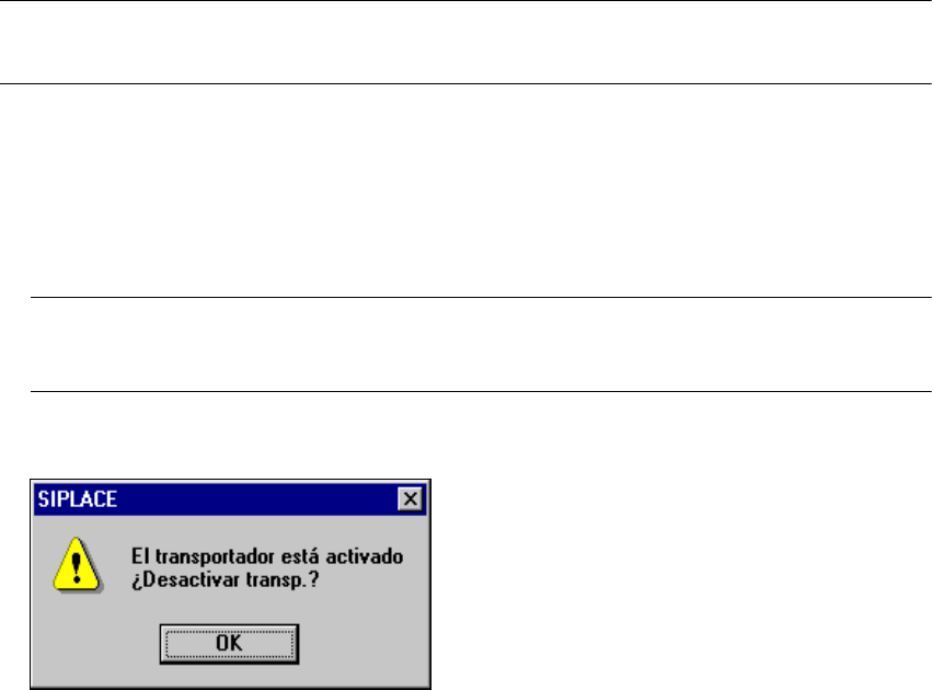 5 Funciones individuales Instrucciones de servicio SIPLACE S-23 HM 5.3 Funciones individuales transporte Versión de software SR.406.xx Edición 02/00 ES 174 On 5 Con ayuda d e esta funció n puede n compro barse los transp…