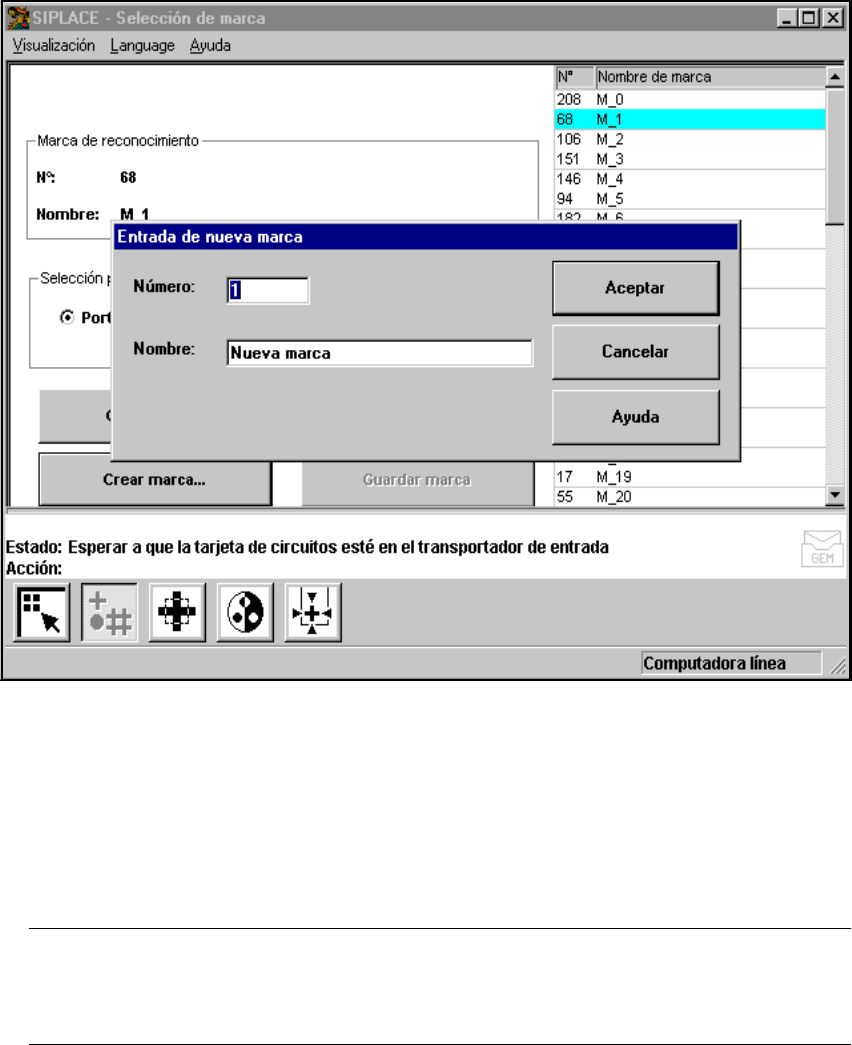 Fig. 6.5 - 11 Menú "Selección de marca", opción "Generar marca", cuadro de entrada