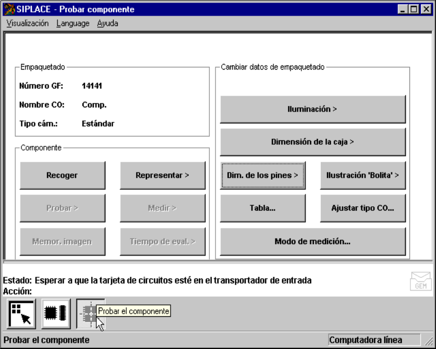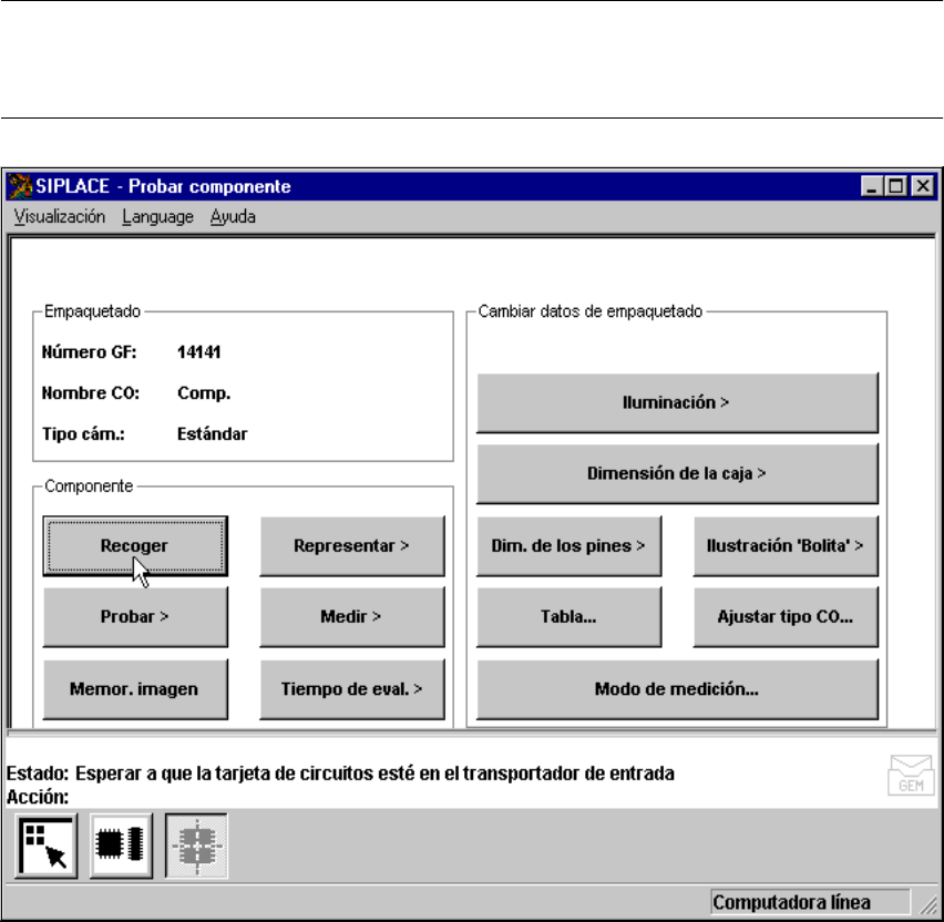 Fig. 6.6 - 15 Menú "Probar el componente", opción "Recoger el componente"
