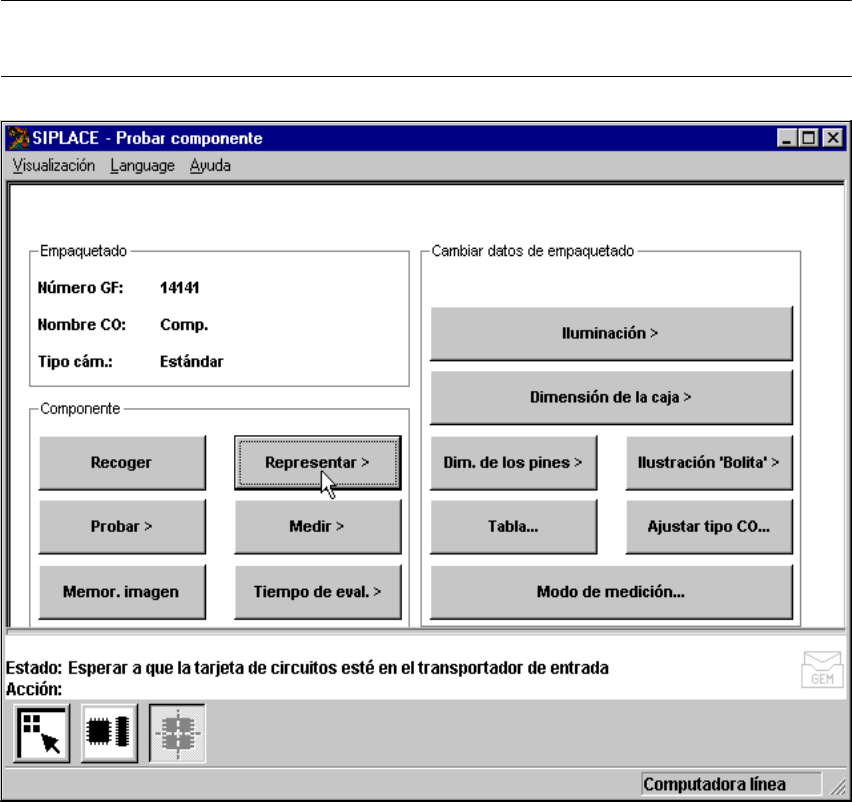 6 Funciones ópticas Instrucciones de serv icio SIPLACE S -23 HM 6.6 Probar el componente Vers ión de software SR.406.xx Edición 02/00 ES 254 6.6.4.2 Opción "Represent ar el componente" INDICACION 6 Antes de p o…