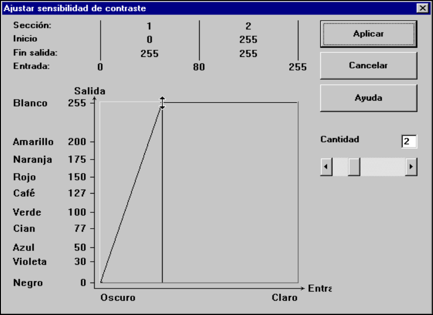 ción. Los límites 0 y 255 son fijos y no se pueden desplazar.