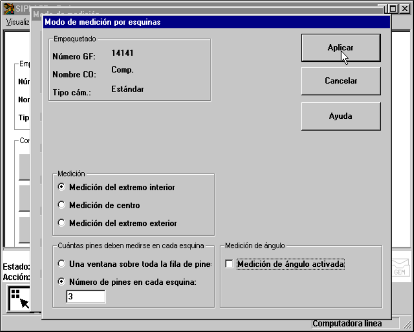 Después de hacer clic en el botón "Ajustar" del modo de medición por esquinas", se visualiza el