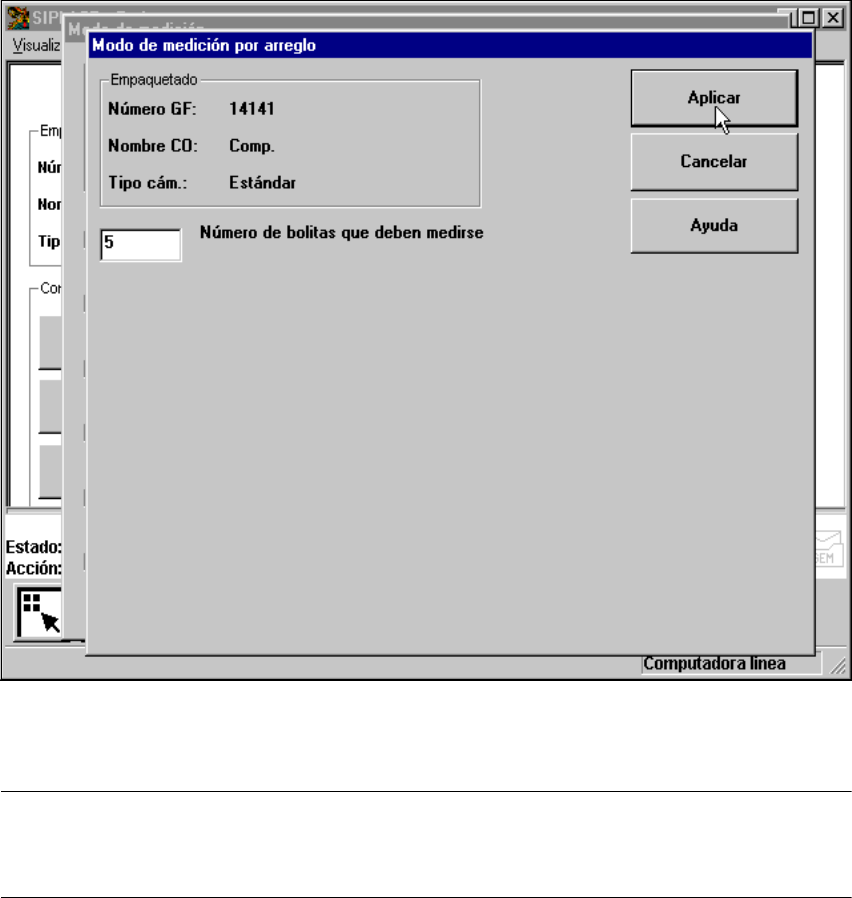 Después de hacer clic en el botón "Ajustar" del modo de medición por "Bolita", se visualiza el
