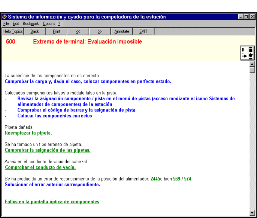 Se abre la ventana principal del sistema de ayuda con la información sobre el error seleccio-